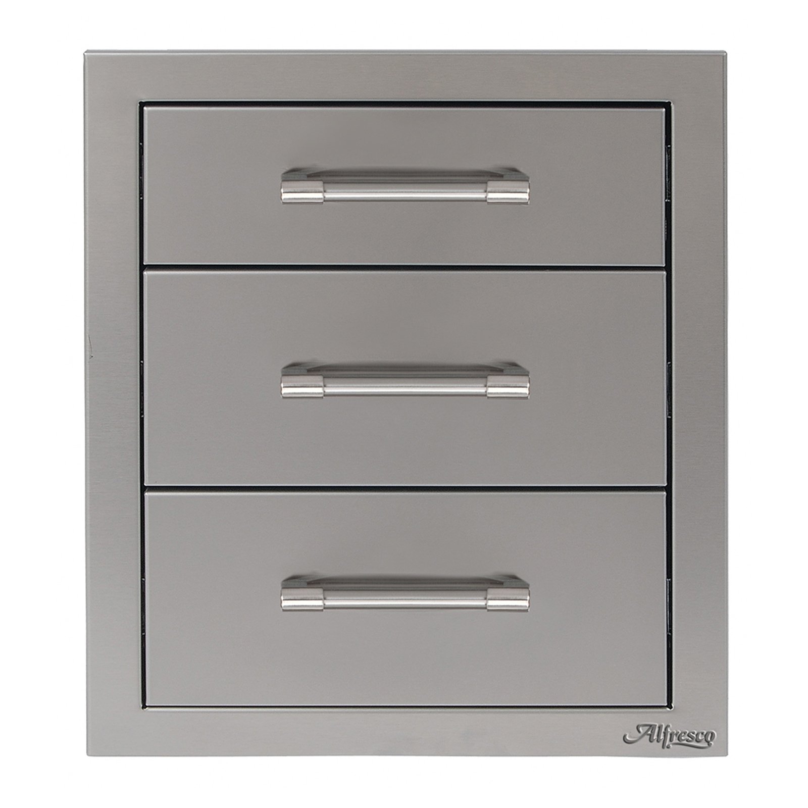 Alfresco 17-Inch Stainless Steel Soft Close Triple Storage Drawer - AXE-3DR-SC