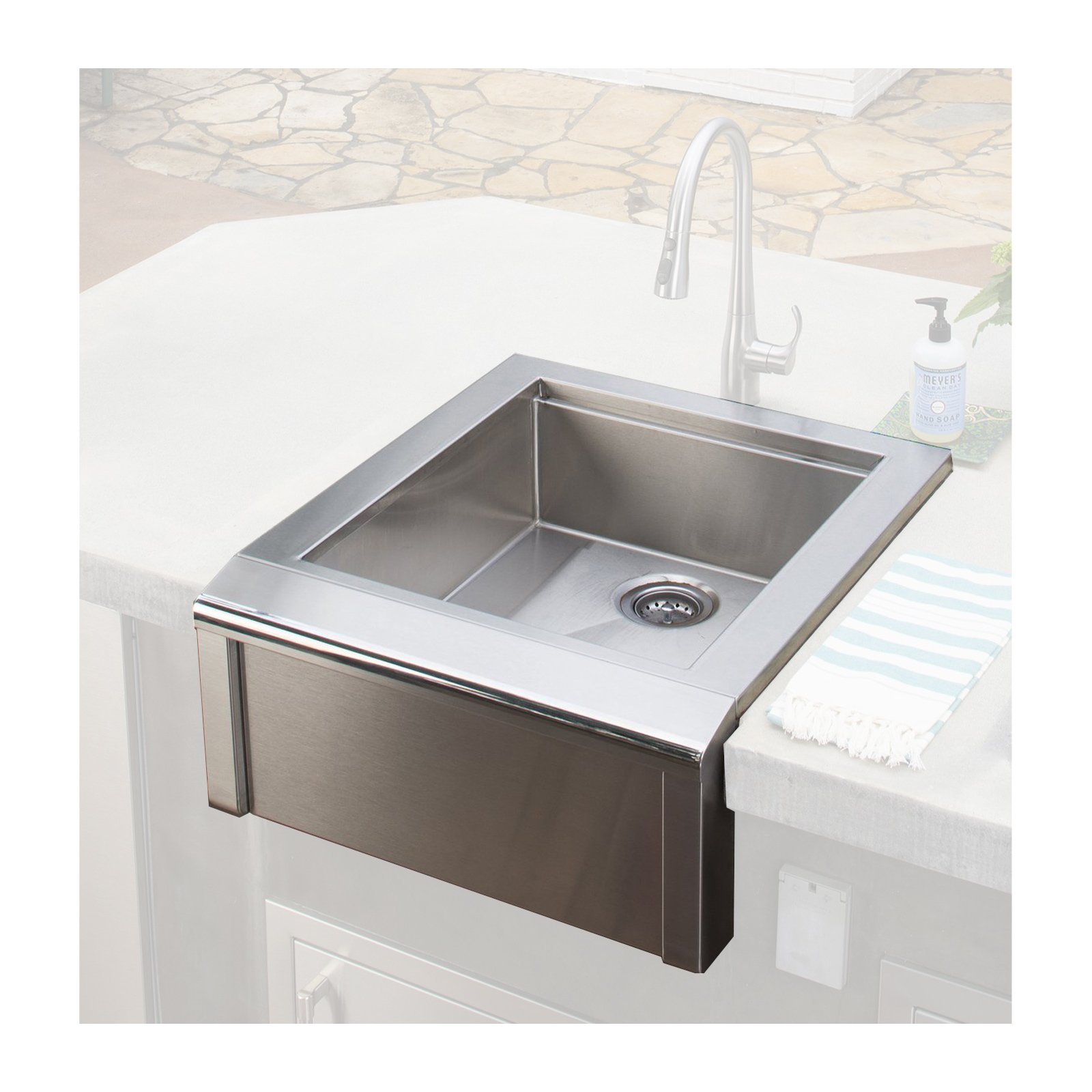 - Sink basin size: 19″W x 21″D x 8 1/4″H