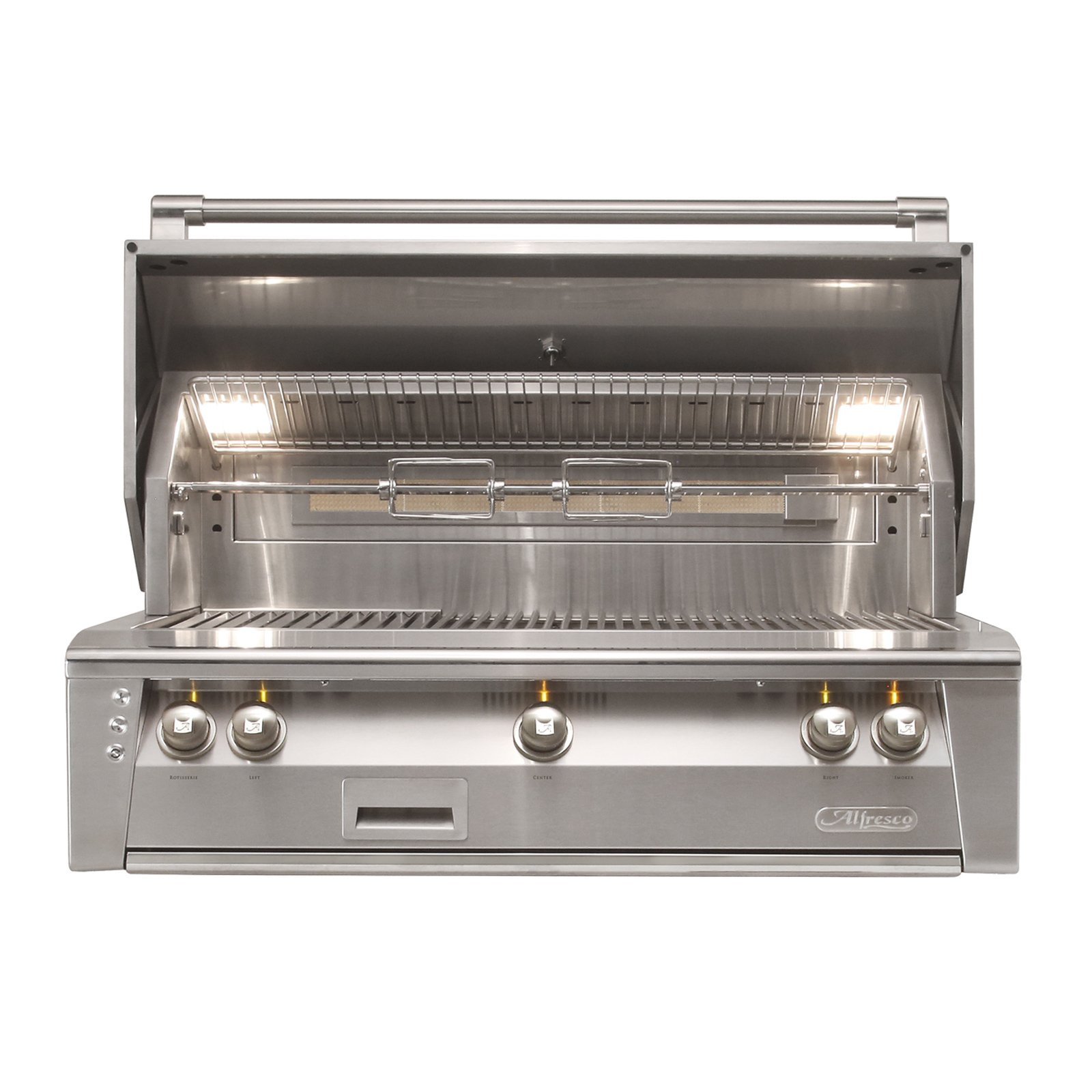 - INSET ROTISSERIE BURNER. All Alfresco grills come with a flush-mounted 1500º rear ceramic infrared rotisserie burner.
