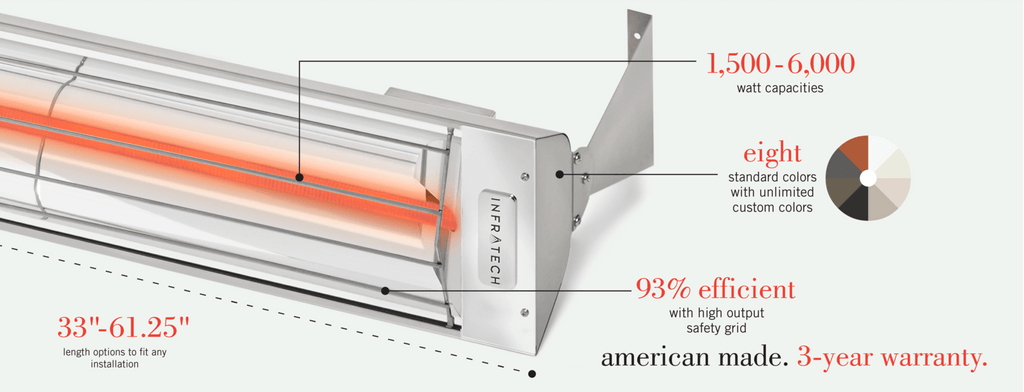 Extend the lifespan of your Infratech heater in climates with exposure to saltwater and other extreme elements with our new Marine Upgrade. It combines the designer-friendly profiles of our products with our most durable, high-grade anti-corrosive 316 stainless steel construction.